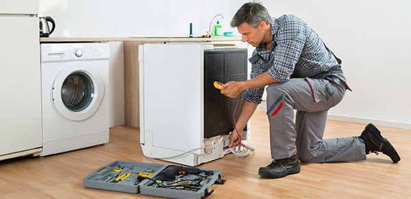 Сотрудник исполняет ремонт: заменяет поломанную часть новой фирменной комплектующей
